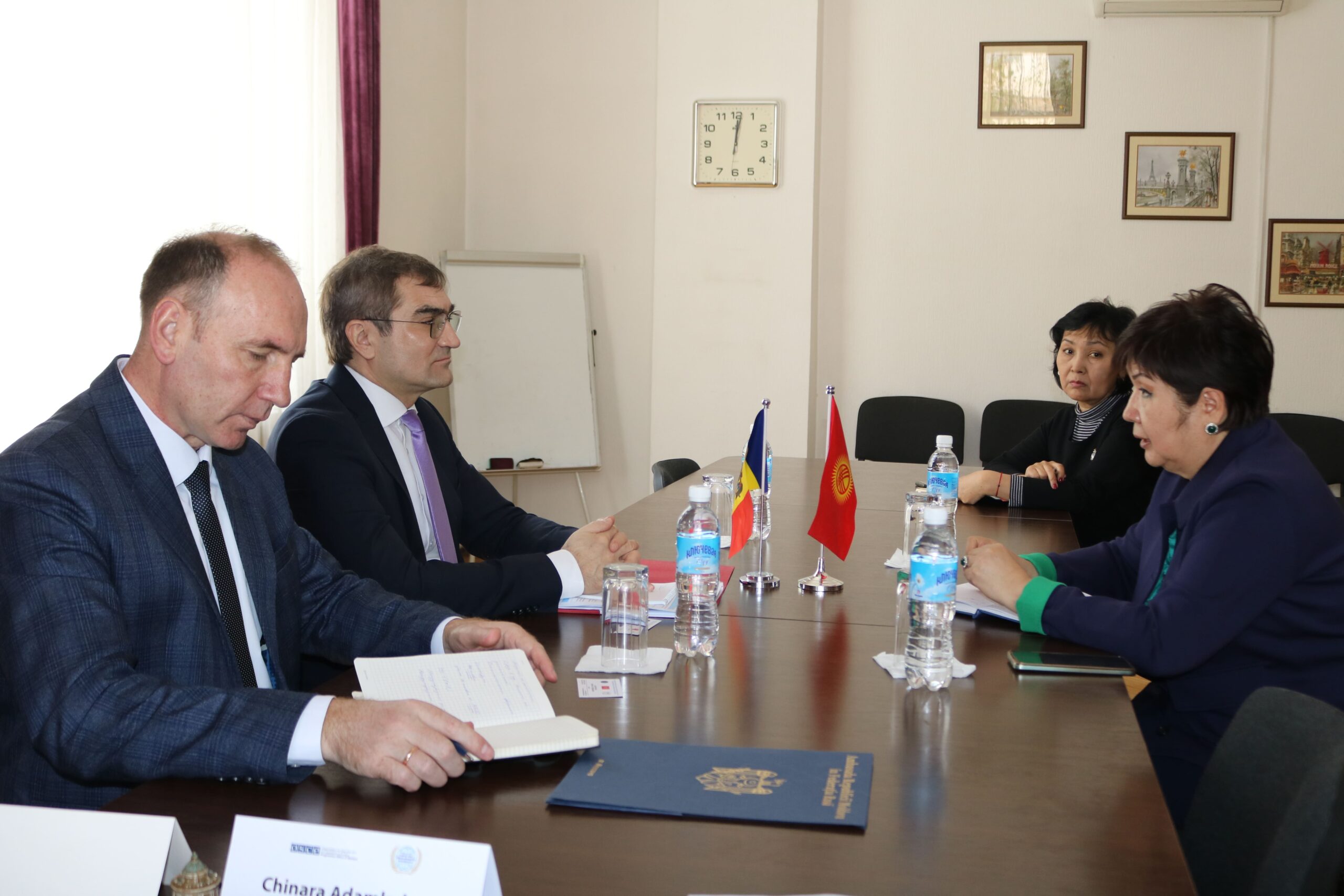 В ходе беседы были рассмотрены вопросы международного сотрудничества: ректор Чинара Адамкулова ознакомила г-на Посла с образовательными программами Дипакадемии, ее научно-исследовательским потенциалом, поделилась опытом работы межвузовского взаимодействия. Было отмечено, что до настоящего времени Дипакадемия не имела контактов с научными и образовательными учреждениями Молдовы и поэтому имеется заинтересованность в налаживании сотрудничества с молдавскими партнерами. Ректор выразила надежду, что визит Посла положит начало сотрудничеству между Дипакадемией и вузами Республики Молдова.