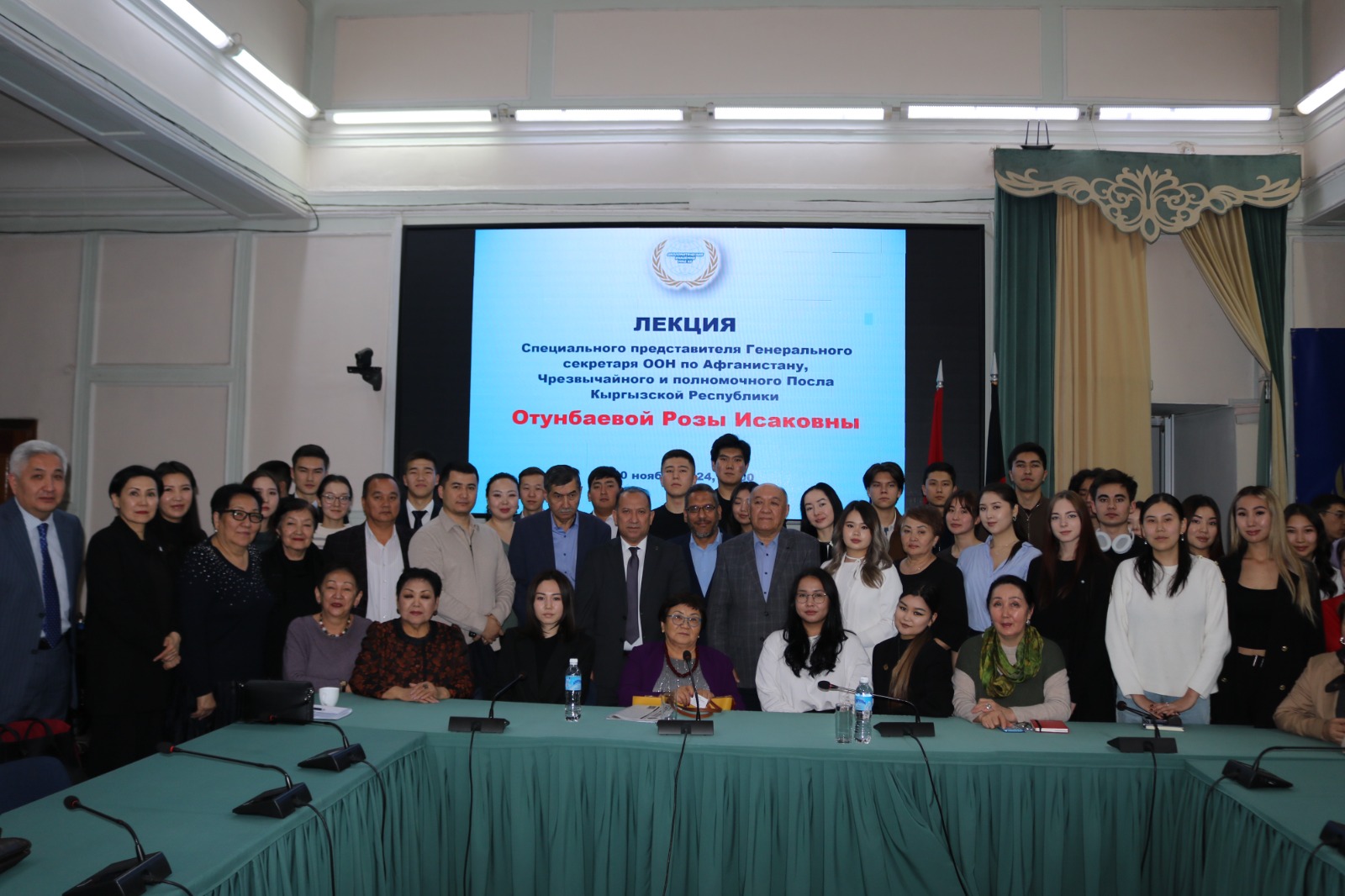 20 ноября 2024 года в Дипломатической академии Министерства иностранных дел Кыргызской Республики состоялась гостевая лекция Специального представителя Генерального секретаря ООН по Афганистану, экс-президента Кыргызской Республики и экс-министра иностранных дел Кыргызской Республики, Чрезвычайного и Полномочного Посла Кыргызской Республики Розы Исаковны Отунбаевой.