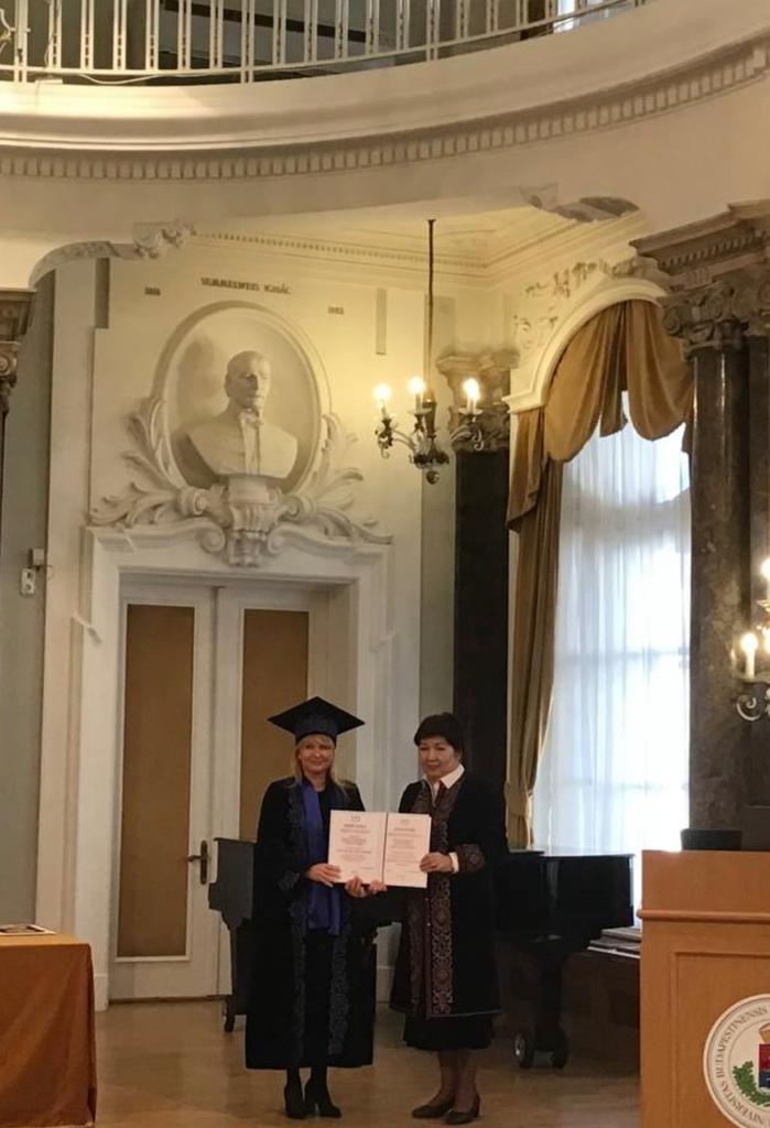 В ходе форума, в знак признания особого личного вклада в установление кыргызско-венгерских отношений, укрепление связей между ведущими вузами Кыргызстана и Венгрии, состоялась официальная церемония присвоения звания «Почетный профессор Дипломатической академии Министерства иностранных дел Кыргызской Республики имени Казы Дикамбаева» Президенту Венгерской Дипломатической академии и программы Stipendium Hungaricum Орсоле госпоже Паксай-Томасиш.