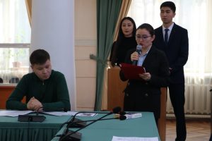 - Студенты 4-го курса Бактыбеков Белек и Сугатчиева Айзат познакомили присутствующих с поэзией шотландского поэта Роберта Бернса, представив художественное чтение стихов на кыргызском языке в переводе Нургазы Кемельбаева, ЧПП КР.
