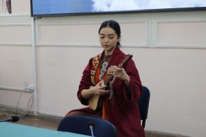 - Студентка 3-го курса Абдыкеримова Кундуз, исполнила на комузе произведение “Көйрөң күү”, подарив зрителям момент глубокой национальной музыки.